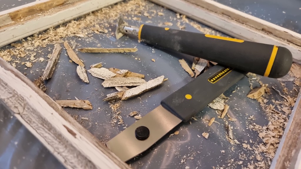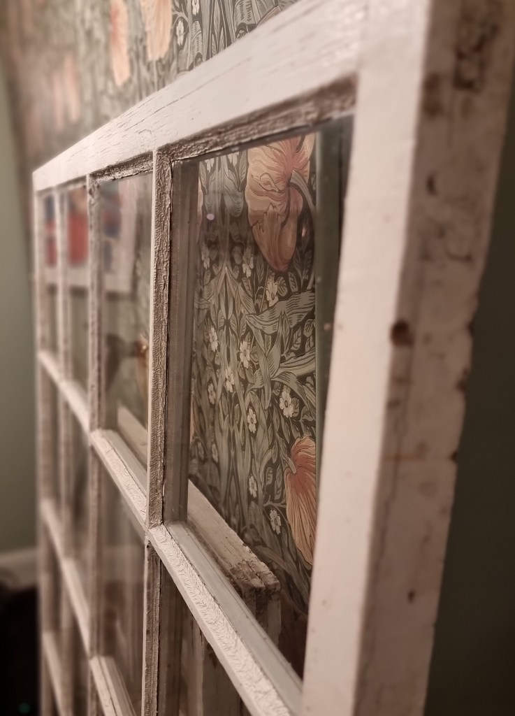 Jag hittade ett stort och fint gammalt spröjsfönster som behövde lite kärlek. En ruta saknades, så den fick jag ersätta innan jag skrapade, kittade om och målade.
